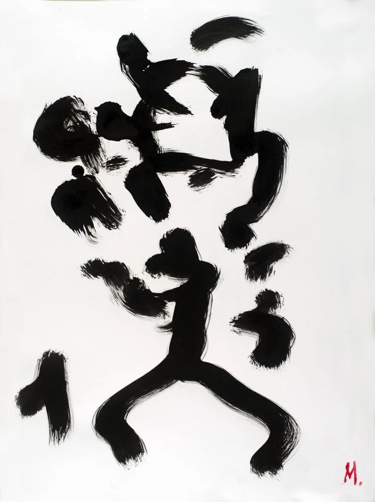 Study of Self captures the raw emotional tension of looking inward — that charged space between thought and feeling. Painted in sweeping black brush strokes over stark white, this abstract portrait distills the human experience into pure gesture and movement, stripping away everything but instinct and truth.